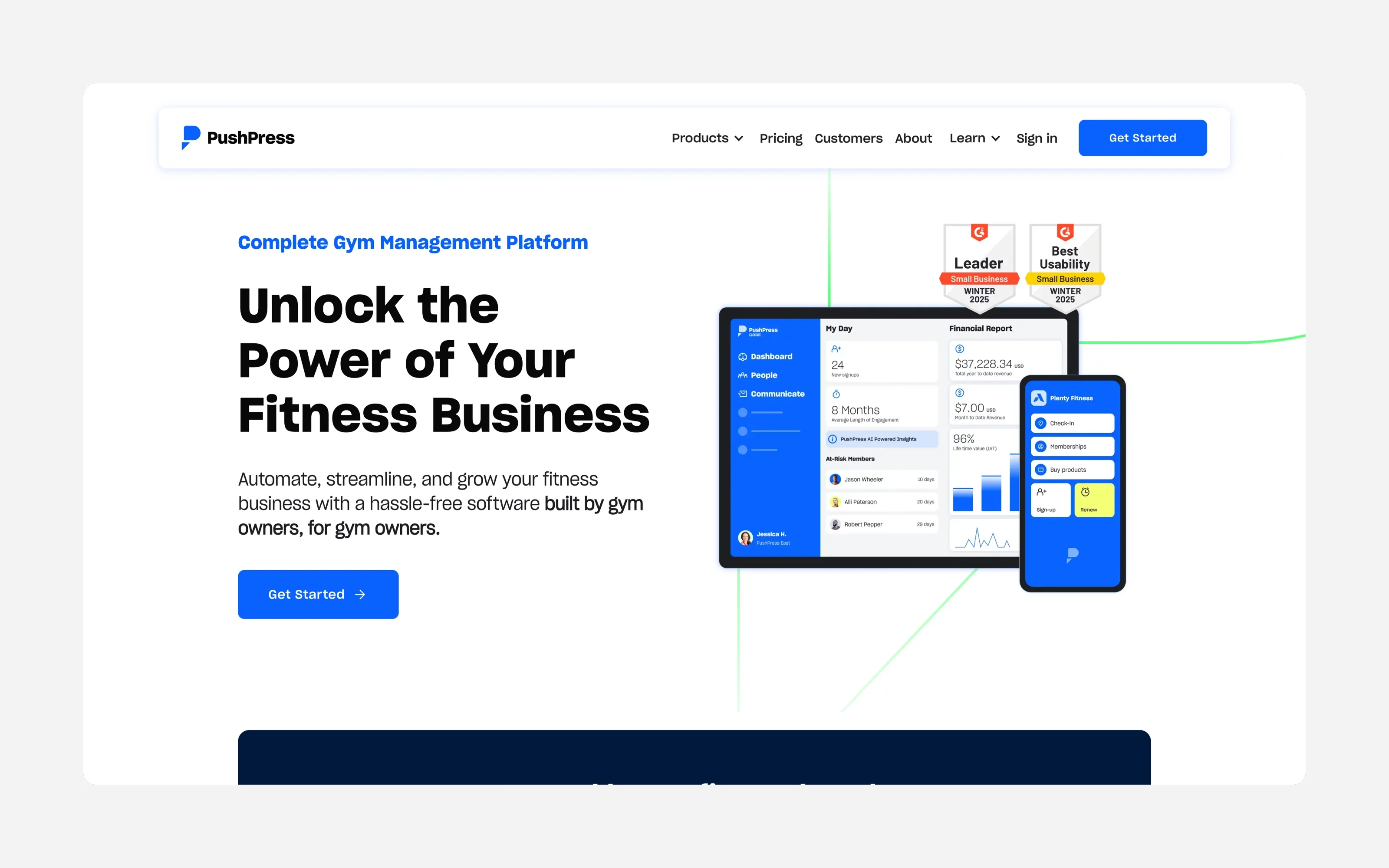 PushPress is a robust platform built for fitness businesses that want strong automation and flexible workflows. While it’s more common in CrossFit and strength-focused gyms, it can work well for small studios—if you’re willing to manage a slightly steeper learning curve.