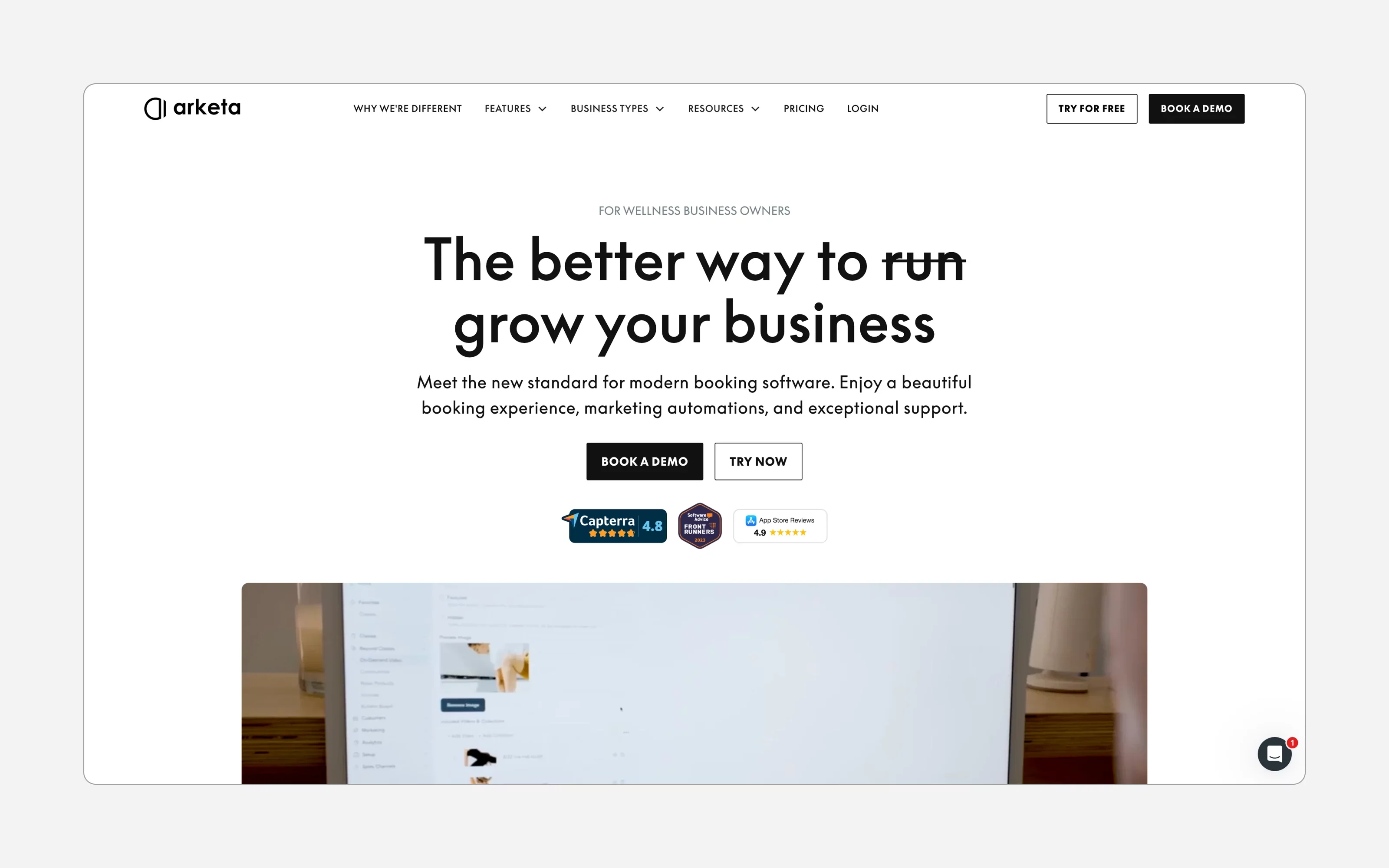 Arketa is a beautiful, design-focused platform that combines bookings with website builder features, online programs, and membership options.