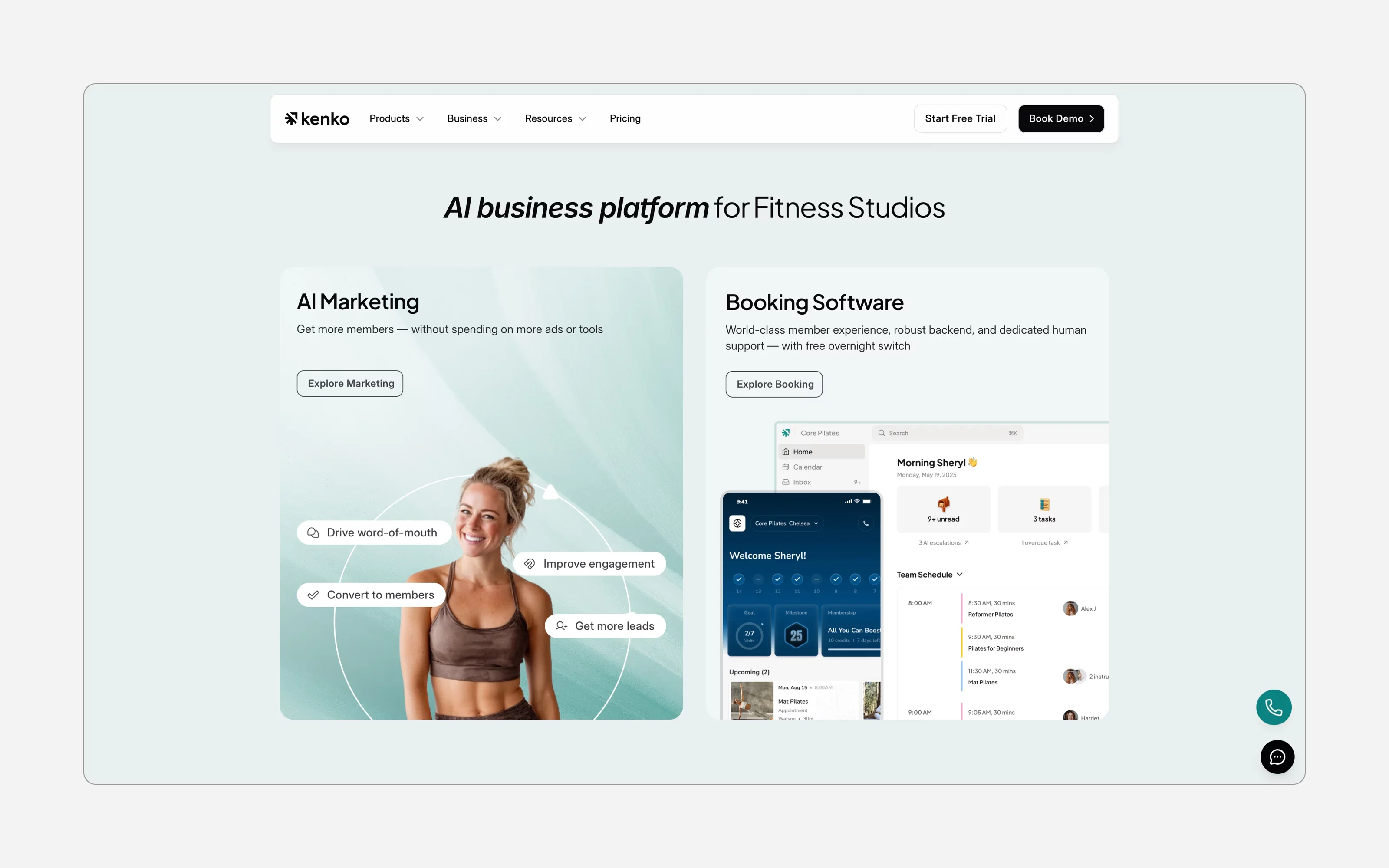 Kenko is a polished, brand-focused management platform designed for boutique fitness studios. It’s visually refined, allows for a branded client app, and offers deeper customization than many competitors — making it a good fit for upscale Pilates studios.